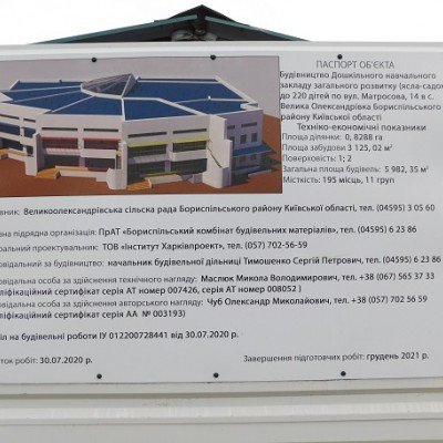 Будівництво дошкільного навчального закладу загального розвитку (ясла-садок) до 220 дітей по вул. Матросова, 14 в с. Велика Олександрівка Бориспільського району Київської області